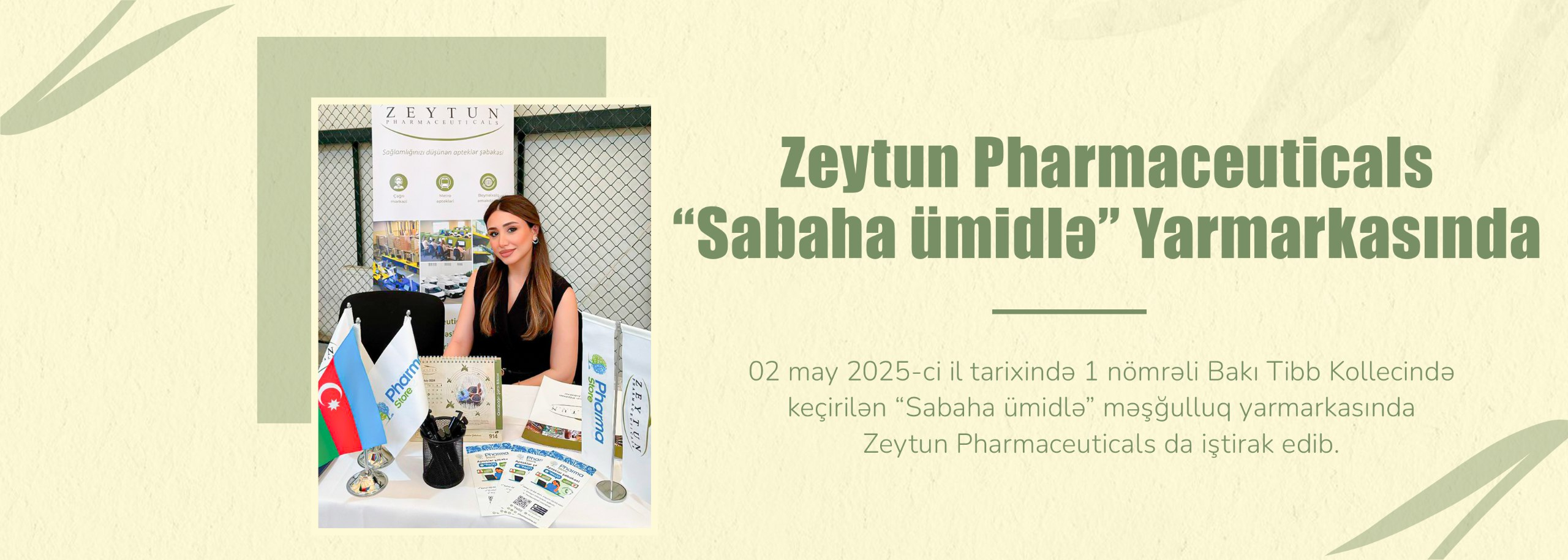 2025-ci il, mayın 2-də 1 nömrəli Bakı Tibb Kollecində təşkil olunan “Sabaha ümidlə” məşğulluq yarmarkası, tələbə və məzunların əmək bazarına daha uğurlu inteqrasiyasına dəstək məqsədi daşıyırdı. Tədbirdə ölkənin müxtəlif sahələrdə fəaliyyət göstərən aparıcı şirkətləri iştirak etdi. Bu şirkətlər arasında əczaçılıq sektorunun tanınmış nümayəndəsi Zeytun Pharmaceuticals da yer aldı.