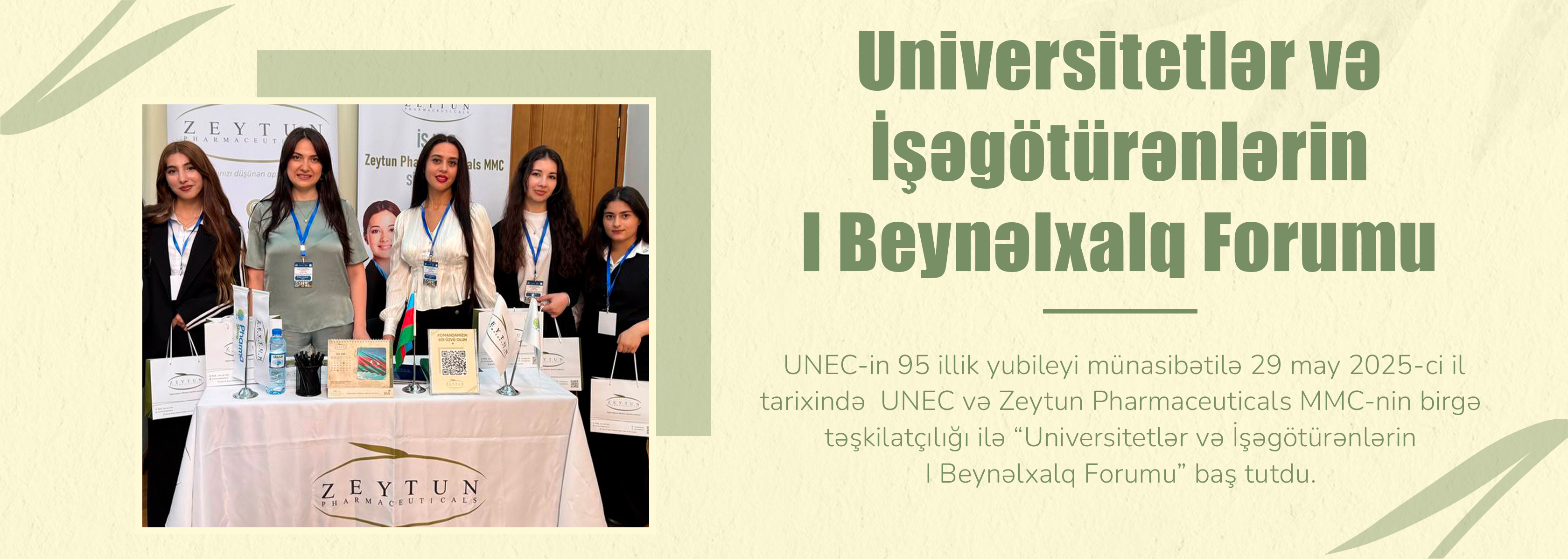 29 may 2025-ci il tarixində Azərbaycan Dövlət İqtisad Universiteti (UNEC) və Zeytun Pharmaceuticals MMC-nin birgə təşkilatçılığı ilə “Universitetlər və İşəgötürənlərin I Beynəlxalq Forumu” baş tutdu. Forum UNEC-in 95 illik yubileyi münasibətilə keçirilən silsilə tədbirlər çərçivəsində reallaşdı.