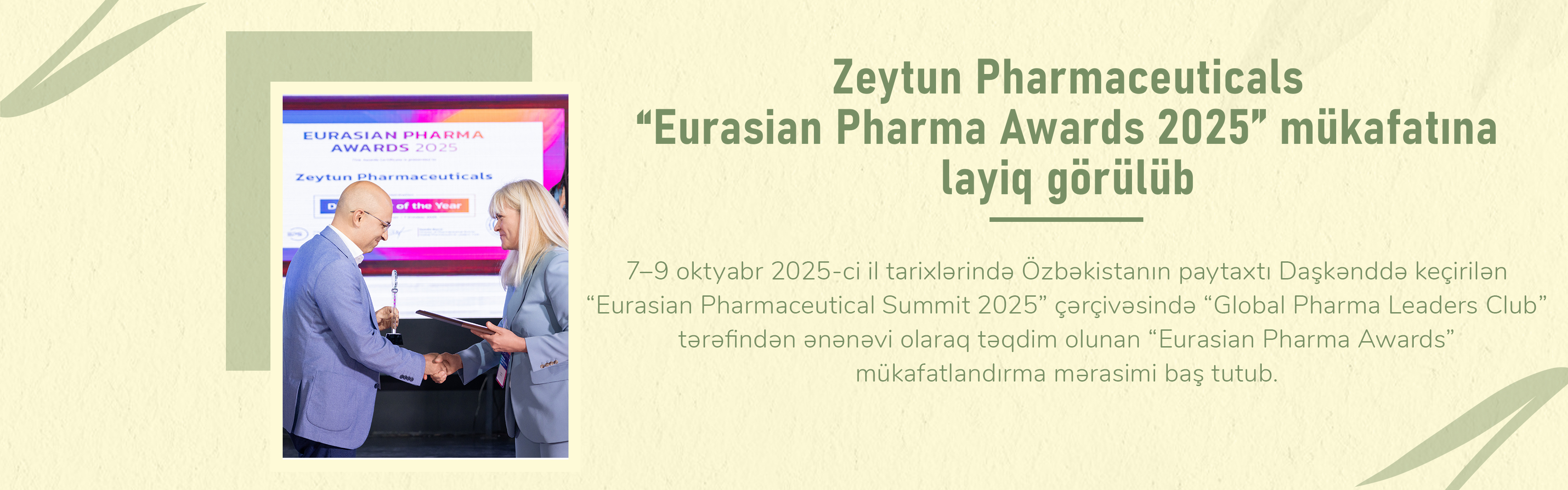 Zeytun Pharmaceuticals “Eurasian Pharma Awards 2025” mükafatına layiq görülüb